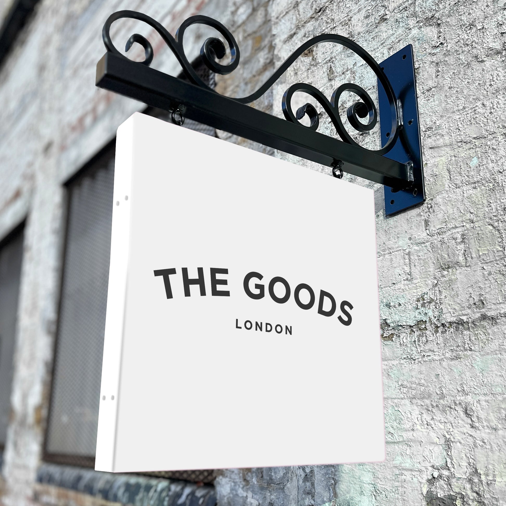 This is our tradtional scroll work bracket (Style B) (also called projected signs or hanging swing signs), this traditional sign is great for shops, bars and restaurants looking for a period look or a hertiage feel. Choose from a simple metal panel or a double sided metal box tray.